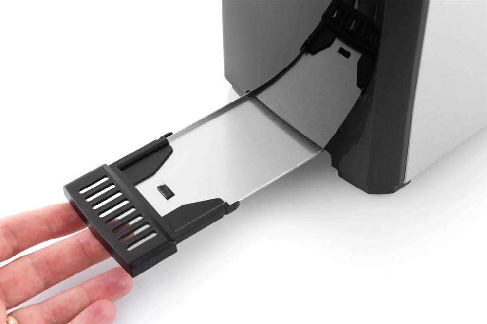 A karbantartást könnyíti a morzsafiók, amelyet egyszerűen kicsúsztathat és kiöntheti a lepergett zsemlemorzsát.