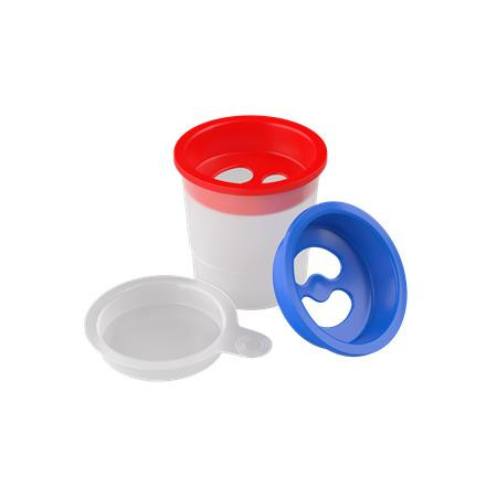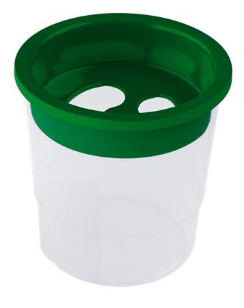 Műanyag ecsettál zárható fedéllel, amely megakadályozza a víz kiömlését.