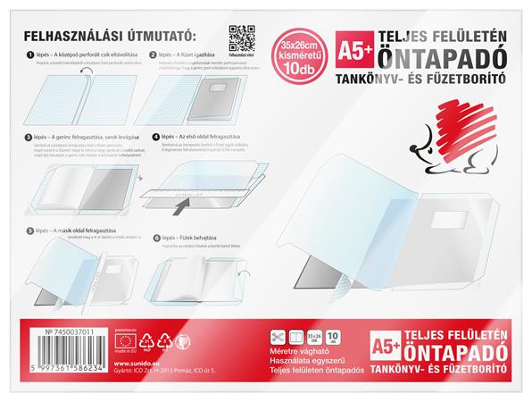 Öntapadós füzetborító amely egyszerűen felhelyezhető – csak húzd le a védőfóliát, vágd az adott füzet méretére, és simítsd el!