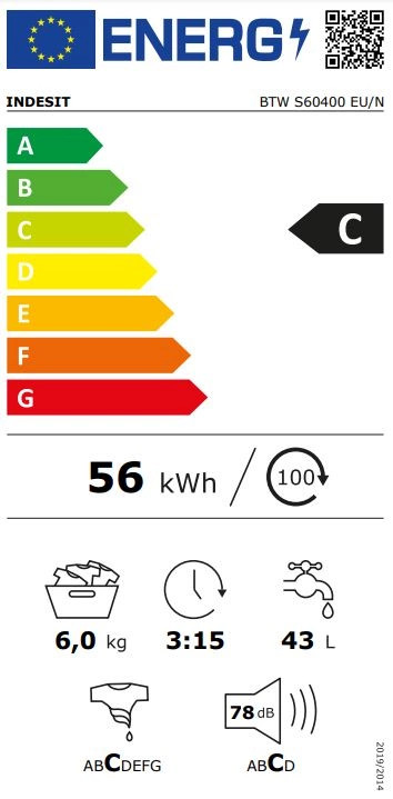 - Az Eco 40-60 program súlyozott energiafogyasztása kWh-ban, 100 mosási ciklusra: 56