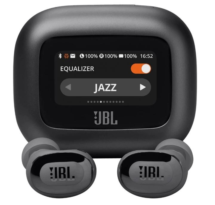 A Smart Charging Case™ 1,45 hüvelykes érintőképernyővel a JBL Live Buds 3 fülhallgató minden elemét személyre szabhatja. A kijelző teljes irányítást biztosít a hangzás felett bármilyen eszközön – laptopon, TV-n, okostelefonon vagy tableten – anélkül, hogy hozzá kellene nyúlnod a telefonodon a JBL alkalmazáshoz.