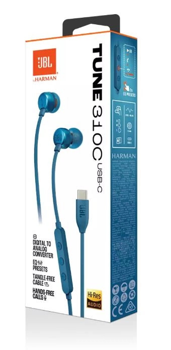 Bemutatjuk a JBL Tune 310C USB-C fülhallgatót. Könnyű, kényelmes és kompakt. Egy pár 9 mm-es dinamikus meghajtó erőteljes JBL Pure Bass Sound hangzást ad, míg a High-Resolution Audio támogatás kiváló hangminőséget biztosít. Az USB-C kapcsolat sokféle eszközzel, például számítógépekkel, mobilokkal és játékeszközökkel. Ezenkívül a gubancmentes lapos kábelen elhelyezett háromgombos távirányítóval vezérelheted a zenelejátszást és a hangerő-beállítást, az EQ-beállításokat, valamint a beépített mikrofonnal menet közbeni hívásfogadást. Mindezek miatt a JBL Tune 310C USB-C a mindennapi társad lesz a munkahelyeden, otthon és úton.