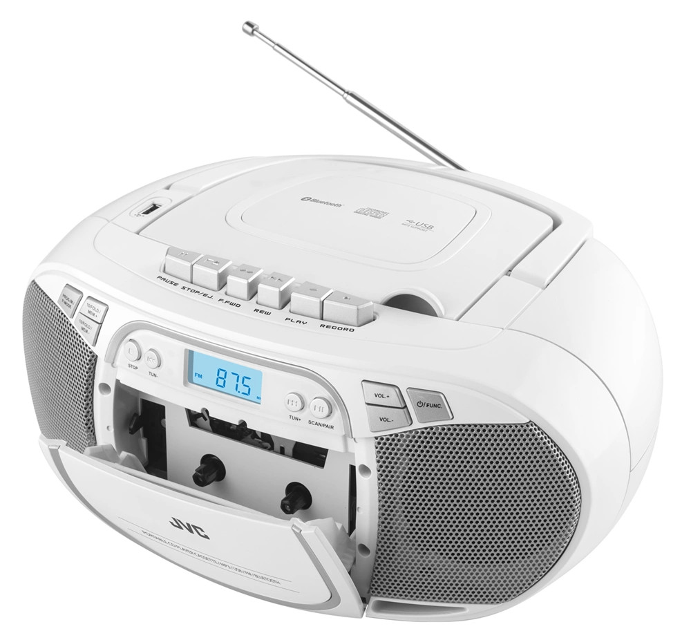 Ahhoz, hogy a régi hangfelvételeit továbbra is tudja hallgatni, egy CD, CD-R és CD-RW lejátszó és egy audió kazetta lejátszó is rendelkezésére áll. Természetesen a CD-ken tárolt MP3 fájlokat is let udja játszani a készülék. Az MP3 fájlok lejátszását emellett Flash lemezeken/pendrive-okon keresztül is megheteti, az USB bemenet segítségével – egészen 32 GB-os kapacitásig. A JVC RC-E451 készülék másik hasznos eleme a 3.5 mm-es AUX bemenet és a fülhallgató kimenet.