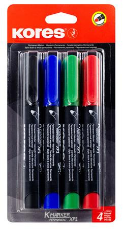KORES Alkoholos marker készlet, 3 mm, kúpos, KORES "ECO K-Marker XP1", 4 különböző szín