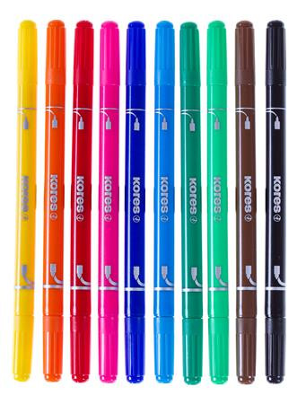 KORES Filctoll készlet, 1-3 mm, kétvégű, kimosható, KORES "Korellos 2in1", 10 különböző szín