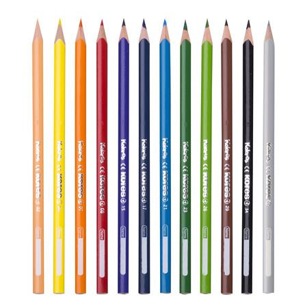 KORES Színes ceruza készlet, háromszögletű, 1 grafittal, 1 hegyezővel, KORES "KOLORES Twist & Turn", 12 különböző szín