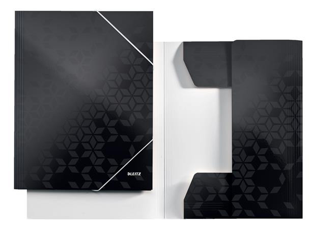 LEITZ Gumis mappa, 15 mm, karton, A4, LEITZ "Wow", fekete