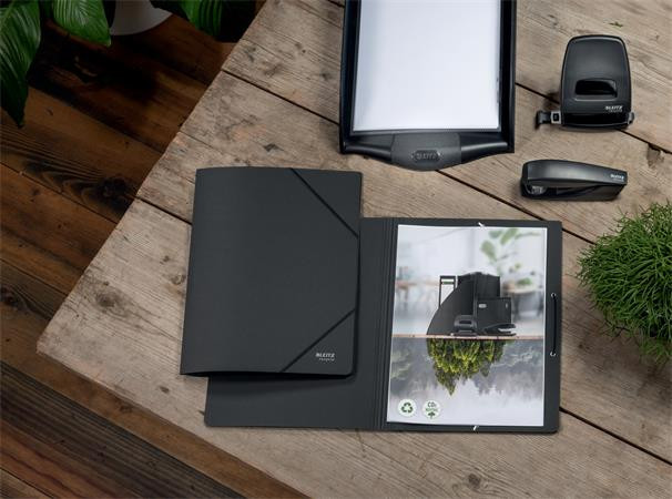 LEITZ Gumis mappa, karton, A4, LEITZ "Recycle", fekete