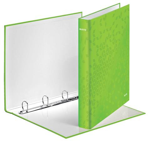 LEITZ Gyűrűs könyv, 4 gyűrű, D alakú, 40 mm, A4 Maxi, karton, LEITZ "Wow", zöld