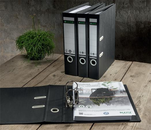 LEITZ Iratrendező, 50 mm, A4, karton, újrahasznosított, LEITZ "180 Recycle", fekete