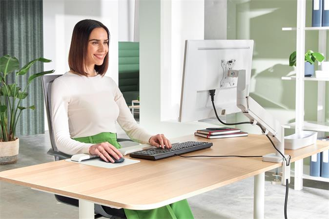 A Leitz helytakarékos monitortartó-kar pozitív hatással van a testtartásra, valamint támogatja a nyak, a váll és a szem kényelmét, amennyiben a monitor magasságát helyesen és az ajánlásnak megfelelően az ideális ergonómiai pozícióba állítják.