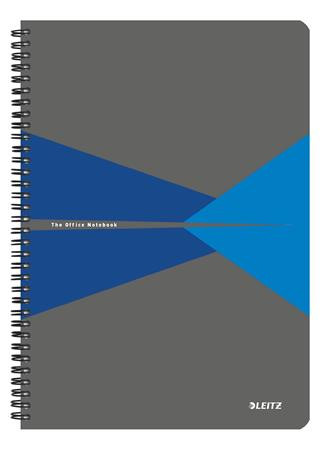 LEITZ Spirálfüzet, A4, kockás, 90 lap, laminált karton borító, LEITZ "Office", szürke-kék