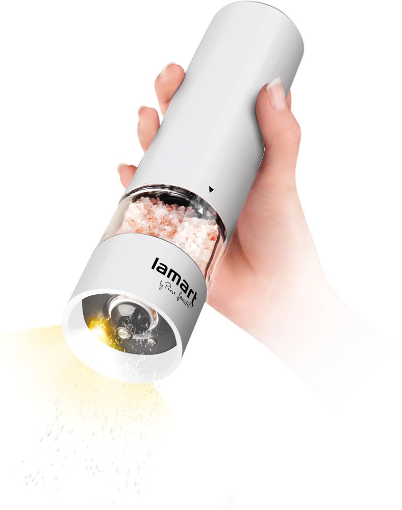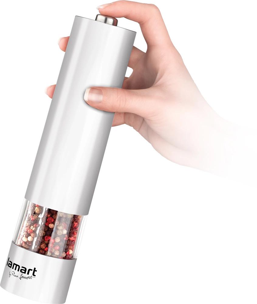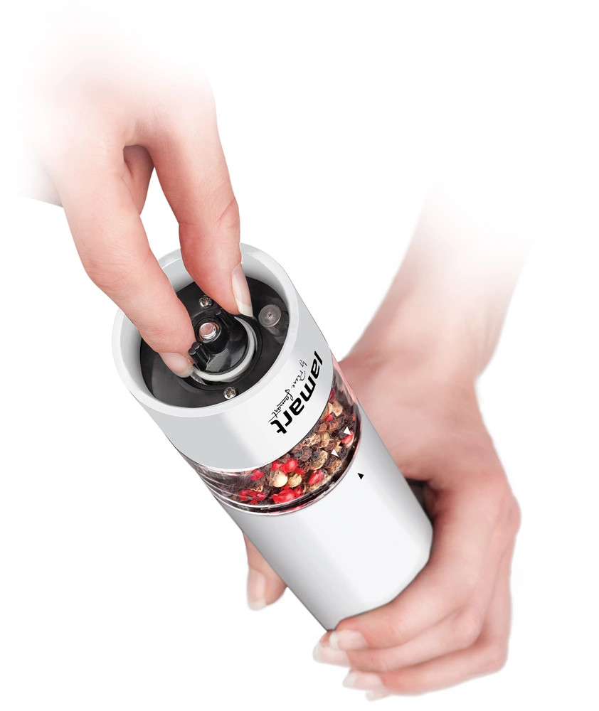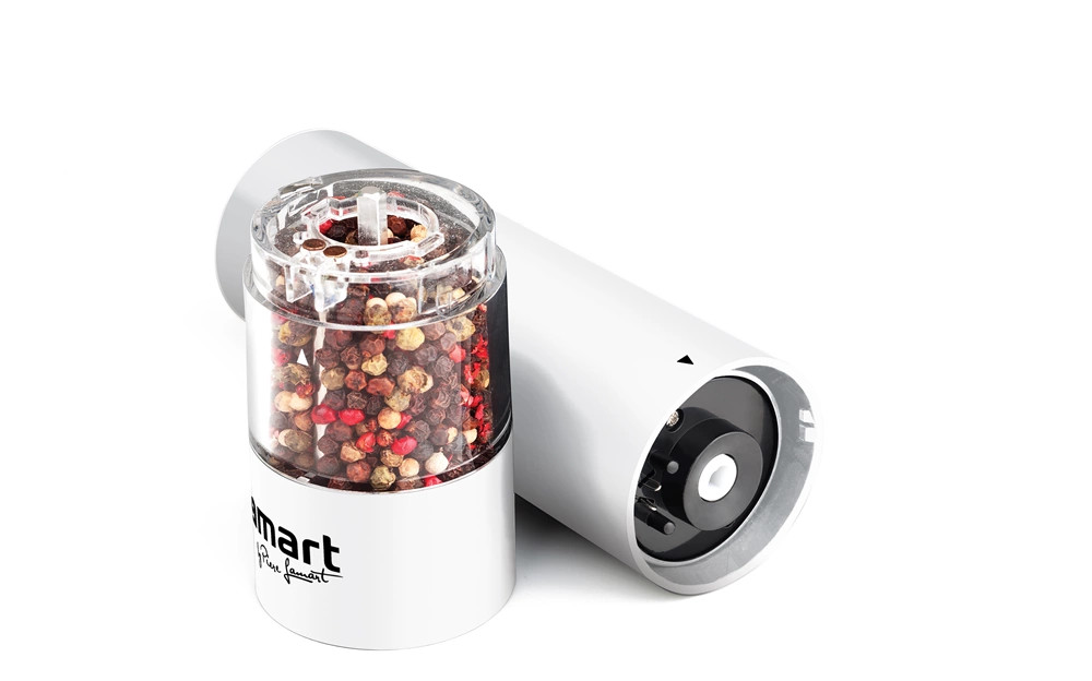 - A fűszer/bors/só daráló könnyű műanyagból készült, kerámia őrlőmechanizmussal, beállítható őrlési finomsággal