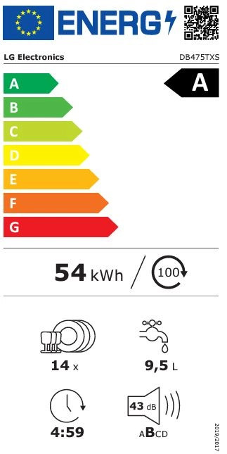 Lg DB475TXS MOSOGATÓGÉP BEÉPÍTHETŐ 14 TERÍTÉK GŐZÖS