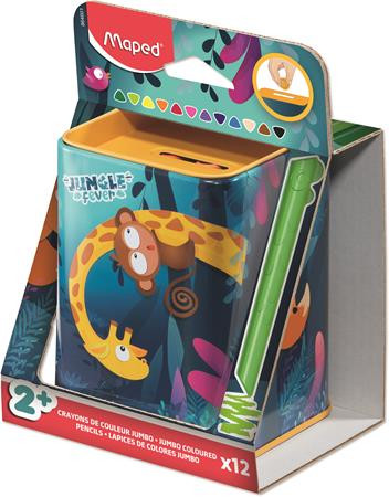 MAPED Színes ceruza készlet, fém perselyben, MAPED „Jungle Fever Infinity Kidy”, 12 különböző szín
