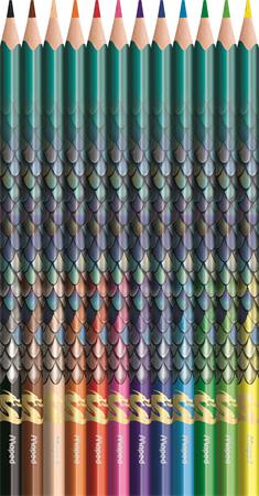 MAPED Színes ceruza készlet, háromszögletű, MAPED „Dragon sárkány”, 12 különböző szín