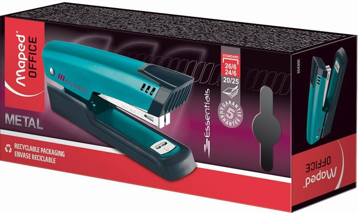 MAPED Tűzőgép, 24/6, 26/6, 20 lap, MAPED "Essentials Half-Strip", türkiz