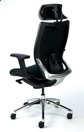 MAYAH Főnöki szék, fejtámasszal, fekete szövetborítás, feszített szövet háttámla, alumínium lábkereszt, MAYAH "Crown"