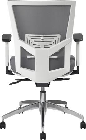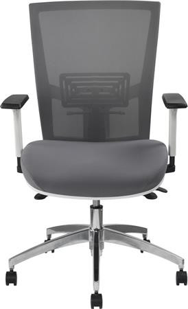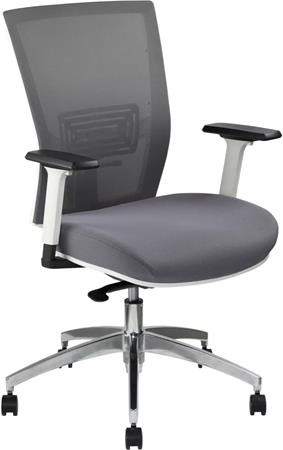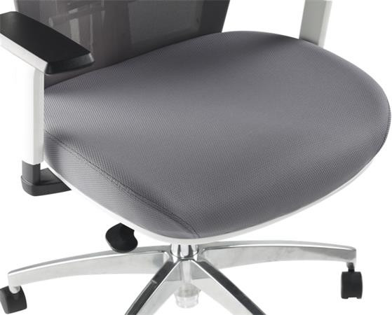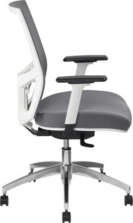 MAYAH Irodai szék, karfás, hamuszürke szövet, feszített hálós háttámla, fehér váz, alumínium lábkereszt, MAYAH "Radar III"