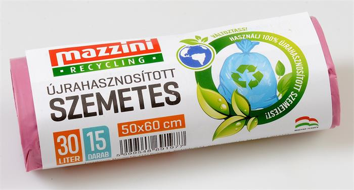 MAZZINI Szemeteszsák, újrahasznosított, 30 l, 15 db, 50x60 cm, 12 µ, MAZZINI, pink