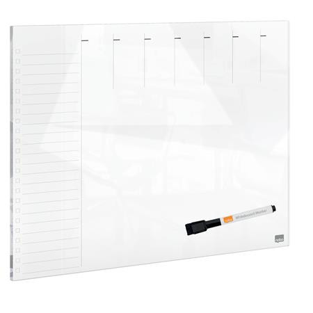 NOBO Tervezőtábla, üveg, mágneses felület, heti, 43x56 cm, NOBO "Home", fehér