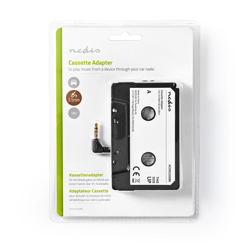 Ezzel a Nedis® kazettaadapterrel meghallgathatja a kedvenc zeneszámait az autórádiója kazettalejátszójával. Egyszerűen csatlakoztathatók hozzá a 3,5 mm-es fejhallgató-csatlakozóval ellátott eszközök (mobiltelefonok vagy MP3-lejátszók), és minőségi hangzást biztosít. Mindössze annyit kell tennie, hogy csatlakoztatja az adapter kábelét a médiaeszköze 3,5 mm-es fejhallgató-csatlakozójához, és behelyez egy kazettát a kazettalejátszóba. Megjegyzés: a kazettalejátszónak nyitott hozzáférésűnek kell lennie.