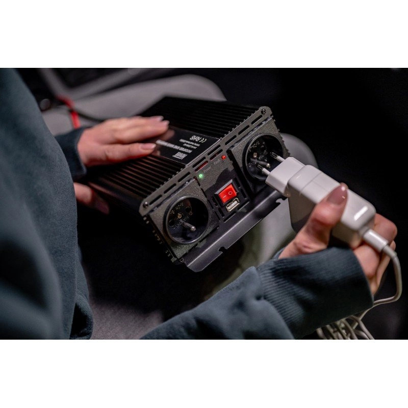 A Newell NL3381-es feszültségátalakító módosított szinuszhullámmal – 24 V / 230 V, 1000 W ideális választás azoknak, akik gyakran utaznak, vagy olyan helyen szeretnék használni kedvenc készülékeiket, ahol nem férnek hozzá a hagyományos elektromos aljzatokhoz. Univerzális áramforrását újratölthető akkumulátorrá teszi. A készülék 2 hagyományos elektromos aljzattal (E szabvány) és 1 USB-A aljzattal van felszerelve. Könnyedén csatlakoztathat eszközöket, például fűtőtesteket, laptopokat, okostelefonokat, táblagépeket, darálókat és még sok mást az inverterhez. Az inverter maximálisan használható teljesítménye 1000 watt. A szokásos kábeleken kívül kényelmesnek találja a bilincsekkel (bilincsekkel) ellátott kábelek használatát, amelyek megkönnyítik a készülék akkumulátorokhoz való csatlakoztatását.