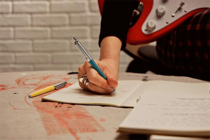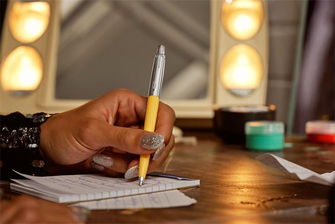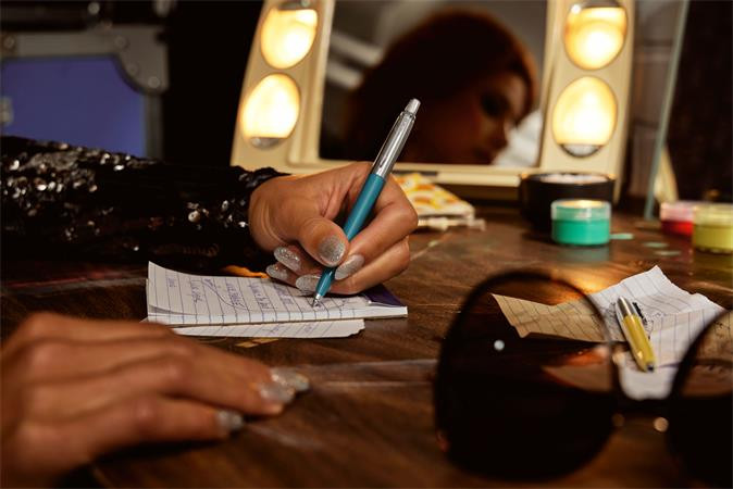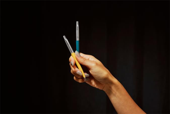 PARKER Golyóstoll szett, 0,7 mm, ezüst színű klip, kék és sárga tolltest, PARKER "Jotter Glam Rock", kék