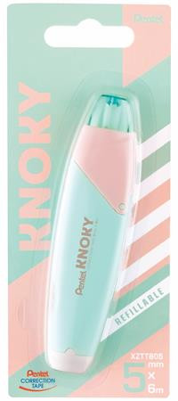 PENTEL Hibajavító roller, 5 mm x 6 m, utántölthető, PENTEL "Knoky", világoszöld-barack