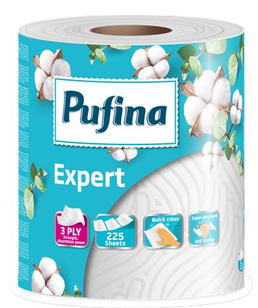PUFINA Háztartási papírtörlő, 3 rétegű, 225 lap, 1 tekercses, PUFINA "Expert"