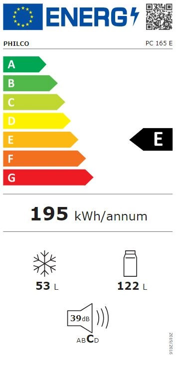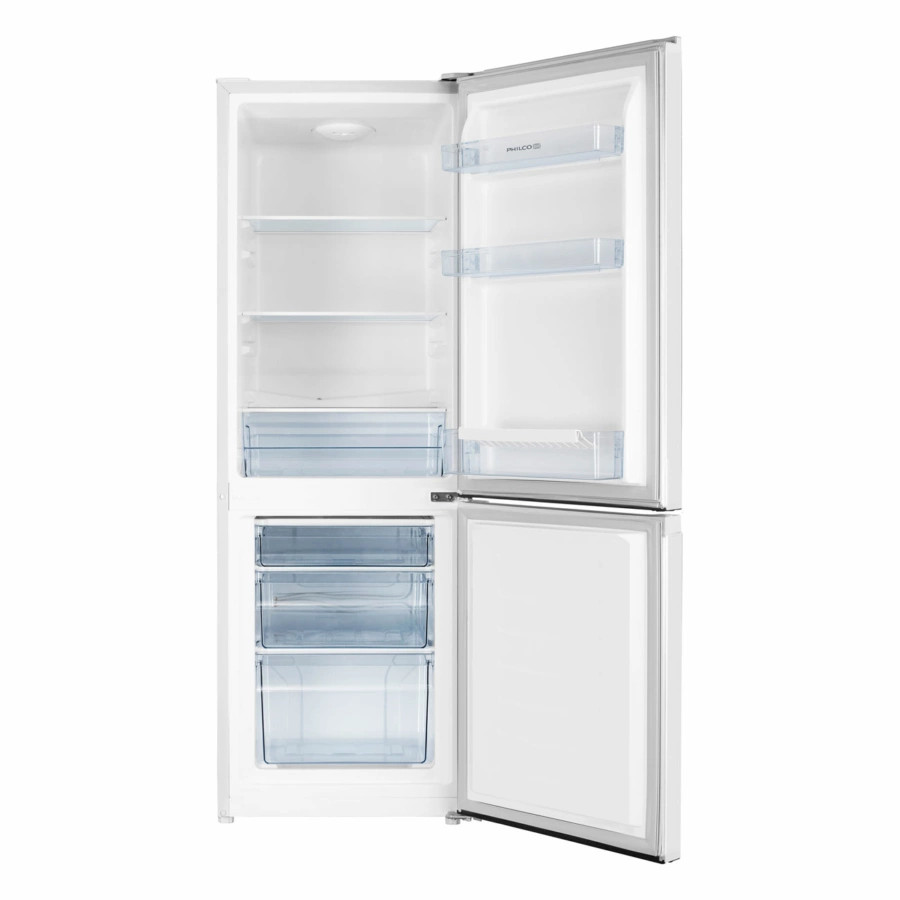 Philco PC 165 E kombinált hűtőszekrény 122 literes hűtőrésszel és 53 literes fagyasztórésszel. A hűtőszekrényben üvegpolcok és LED világítás gondoskodik az élelmiszerek tárolásának kényelméről.
