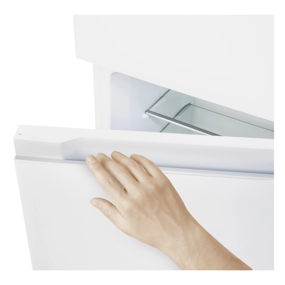 Válassza ki az irányt, amelybe a hűtőszekrényét és / vagy a fagyasztó megfordítható ajtaját nyitni szeretné. Ezáltal a hűtője alkalmazkodni tud az ideális konyhai elrendezéshez. A hűtőszekrény ajtajainak iránya könnyedén megfordítható a csuklópánt cseréjével. Ezáltal a hűtőszekrény szinte bárhová illeszthető, így egyszerűen élvezheti a kényelmes kialakítást.