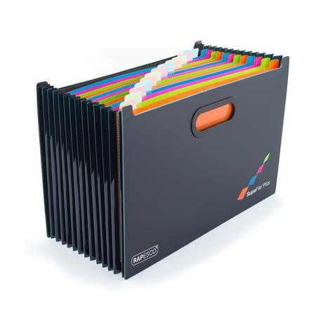 RAPESCO Harmonika irattartó, A4+, PP, 13 rekeszes, RAPESCO "SupaFile Plus", fekete