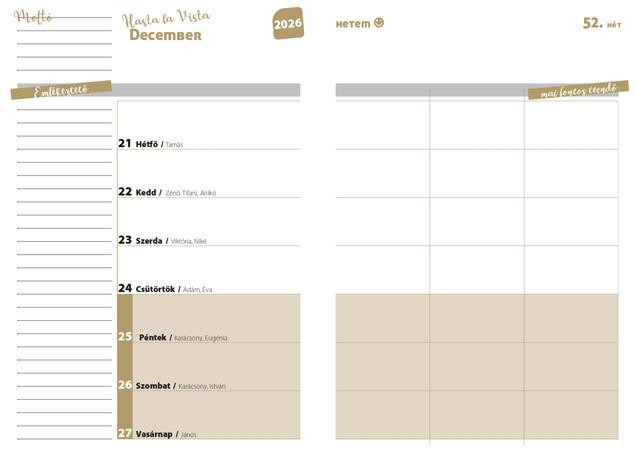 - Agendák, heti beosztással