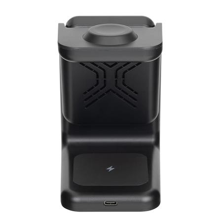 3 az 1-ben ezeték nélküli töltőállomás levehető hordozható akkumulátorral. Lehetővé teszi iPhone, Apple Watch és Pods egyidejű vezeték nélküli töltését.