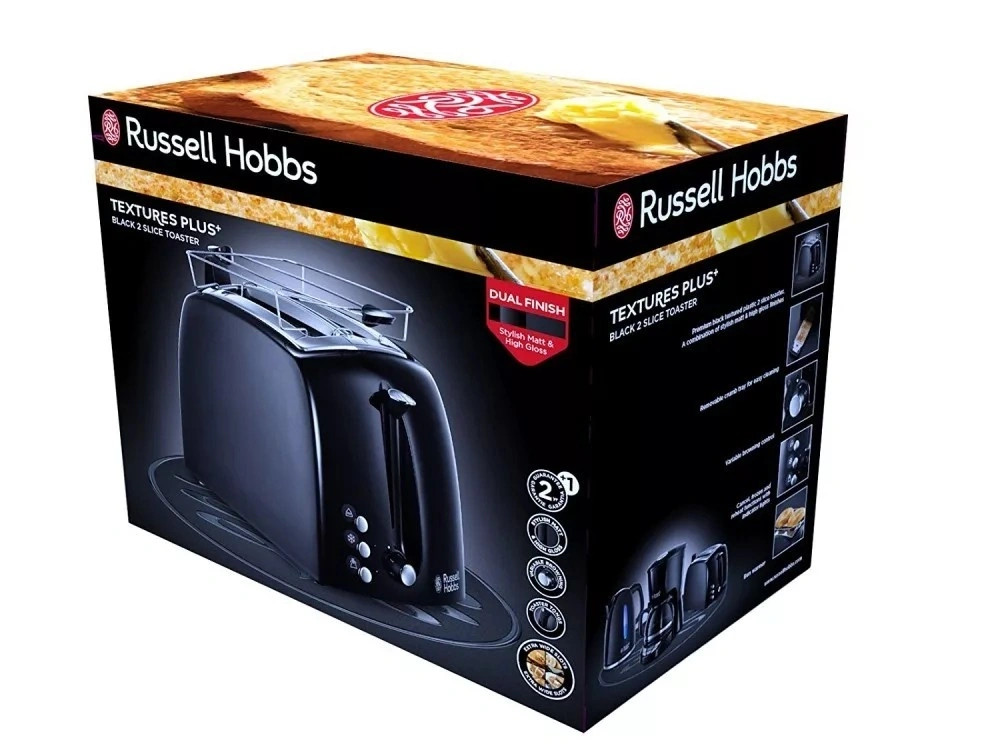 A Russell Hobbs Textures Plus kenyérpirító stílusos, kiváló minőségű, megbízható termék, kényelmi funkciókkal. Extra széles nyílásoknak köszönhetően a különböző méretű kenyérszeletekhez és péksütemények is kiválóan használható.