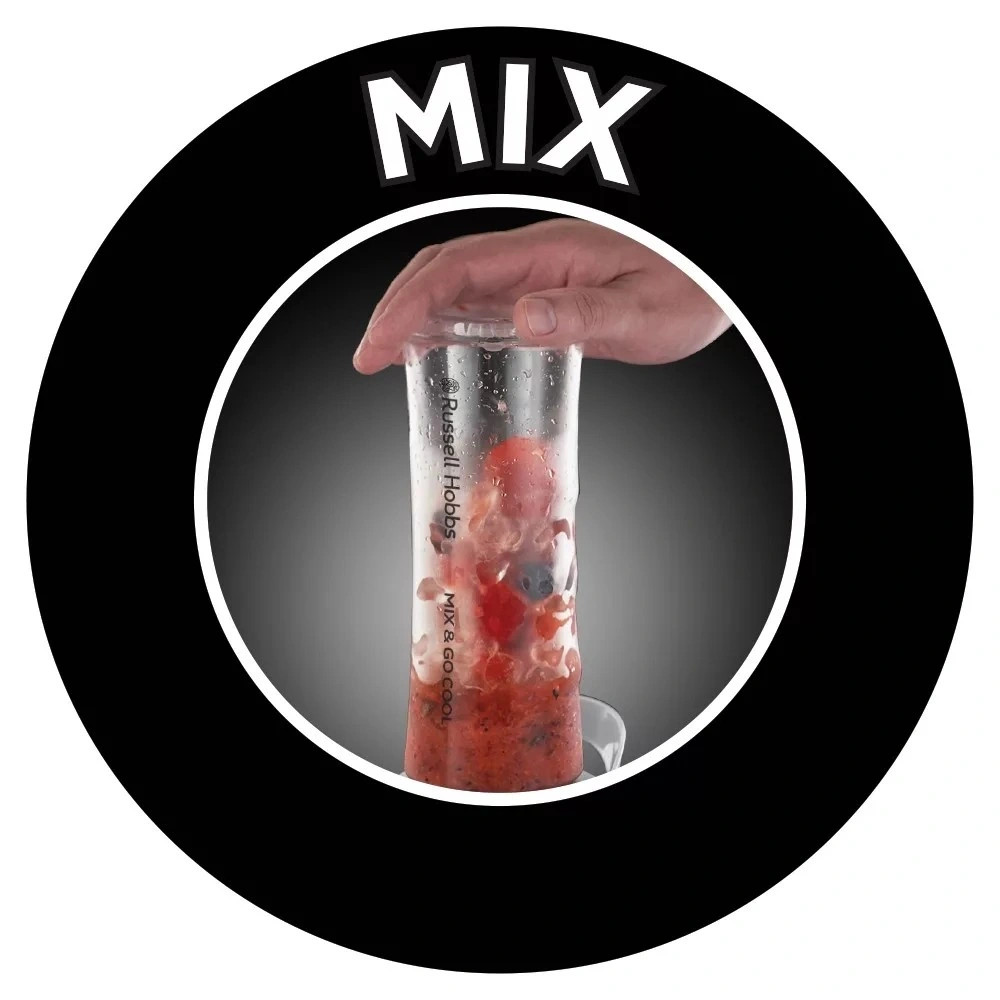 A Mix & Go Cool levehető, jégaprításra alkalmas rozsdamentes acél pengékkel rendelkezik, amelyek nagyszerűek a jéghideg nyári smoothie-k összekeverésére. A levehető pengék mosogatógépben moshatók, így időt takaríthat meg a mosogatással, és beteheti az alkatrészeket a mosogatógépbe, biztosítva, hogy készen álljanak az ön következő alkotására.