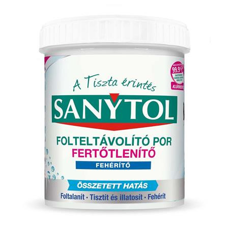 A Sanytol olyan fertőtlenítő folteltávolító port fejlesztett ki fehér ruhákhoz, amely hatékonyan távolítja el a makacs szennyeződéseket és elpusztítja a mikrobák 99, 9%-át már 30°C-on. A termék egyedülálló, enzimeken és aktív oxigénen alapuló formulája mélyen behatol a szövet szálai közé és eltávolítja a szennyeződéseket, illatosítja a ruhákat, illetve visszaadja azok fehérségét.