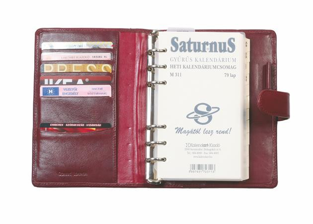 SATURNUS Kalendárium, gyűrűs, betétlapokkal, "M", marhabőr, SATURNUS, "212", barna