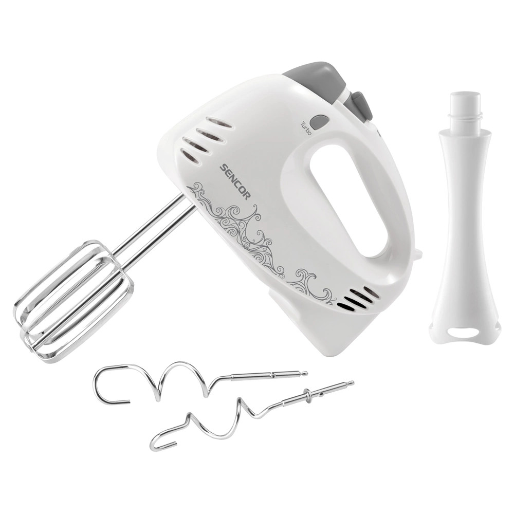 A Sencor SHM 5270-EUE3 kézi mixer 5 fokozattal és turbó gombbal és 400 W teljesítménnyel lett ellátva. Könnyen, egyszerűen dolgozhatja össze a hozzávaló alapanyagokat. Használat közben csendes, de mégis maximális teljesítményt nyújt és az ergonomikus markolatnak köszönhetően garantálja a biztos fogást. Finomabbnál finomabb, könnyű tésztájú süteményeket készíthet a fém habverő szárak segítségével, és a fém dagasztó karokkal ezzel ellentétben ellenállhatatlan kenyereket és hagyományos tésztaféléket keverhet vagy a botmixer feltéttel leveseket készíthet.