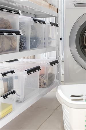 SMARTSTORE Műanyag tárolódoboz, 14 liter, fekete fogantyúkkal, SMARTSTORE "Classic 15", átlátszó