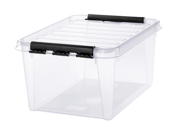 SMARTSTORE Műanyag tárolódoboz, 32 liter, fekete fogantyúkkal, SMARTSTORE "Classic 31", átlátszó