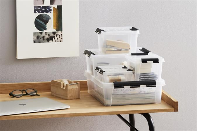 SMARTSTORE Műanyag tárolódoboz, 8 liter, fekete fogantyúkkal, SMARTSTORE "Classic 14", átlátszó
