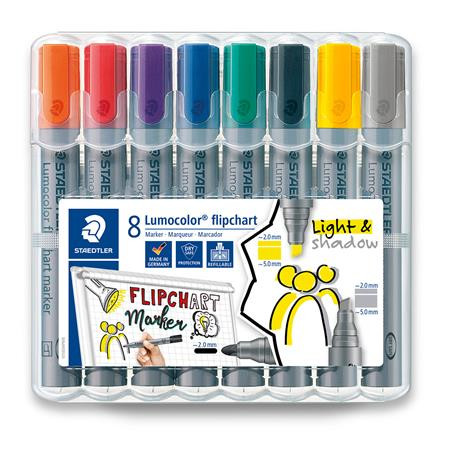 STAEDTLER Flipchart marker vegyes készlet, 2/2-5 mm, STAEDTLER "Lumocolor® 356", 8 különböző szín