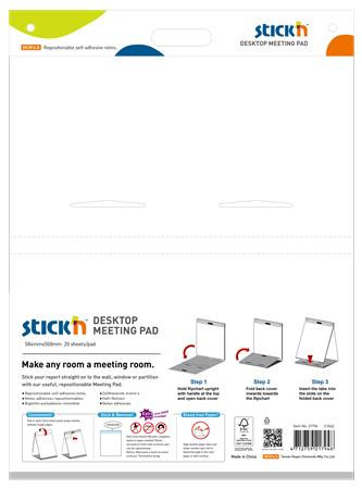 STICK N Asztali flipchart tömb, öntapadó, 584x508 mm, 20 lap, STICK N, fehér