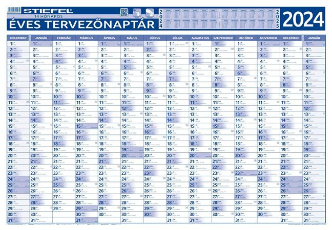 STIEFEL Éves tervező és projekt naptár, kétoldalas, fémléces, kék színű filctollal, 70x100 cm, 2026 évi, STIEFEL