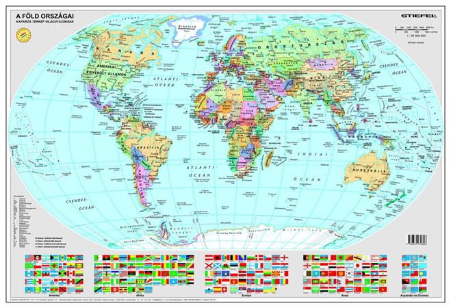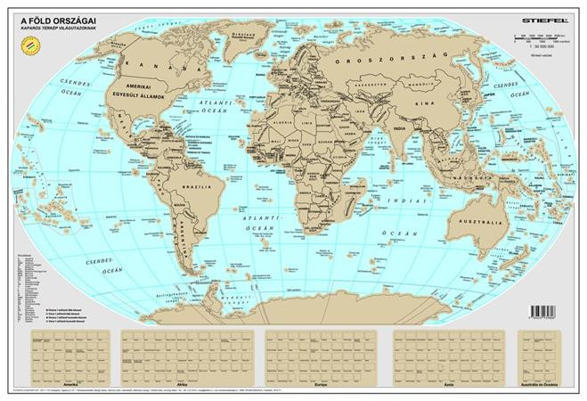 STIEFEL Kaparós Világtérkép, 84x57 cm, STIEFEL, A Föld országai, arany bevonat