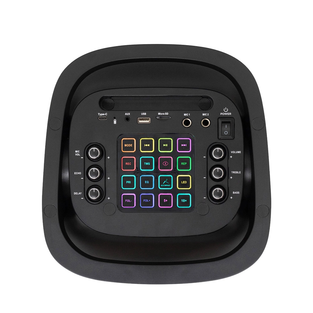 A látványos, kikapcsolható LED fényeffektek, a két mikrofon csatlakozó visszhangosítható KARAOKE funkcióval és a mikrofon hangjának felvétele USB/microSD tárolóra tovább növelik a hangrendszer sokoldalúságát. Az AUX audio bemenet (3.5mm) további külső eszközök csatlakoztatását is lehetővé teszi.