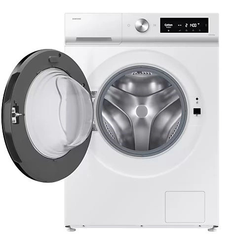 * Elérhető Android és iOS eszközökön. Wi-Fi kapcsolat és Samsung fiók szükséges.** 20-40°C között kiválasztott mosási hőmérséklet esetén alkalmazható.*** A WW11BB944AGB modellen végzett belső tesztelés alapján, normál használati körülmények között. Eredmények: Energiafogyasztás AI energia (AI=MI, Mesterséges intelligencia) üzemmód nélkül = 0,539 KWh. Energiafogyasztás AI energia üzemmóddal = 0,145 KWh. Az eredmények a tényleges használati körülményektől függően változhatnak.
