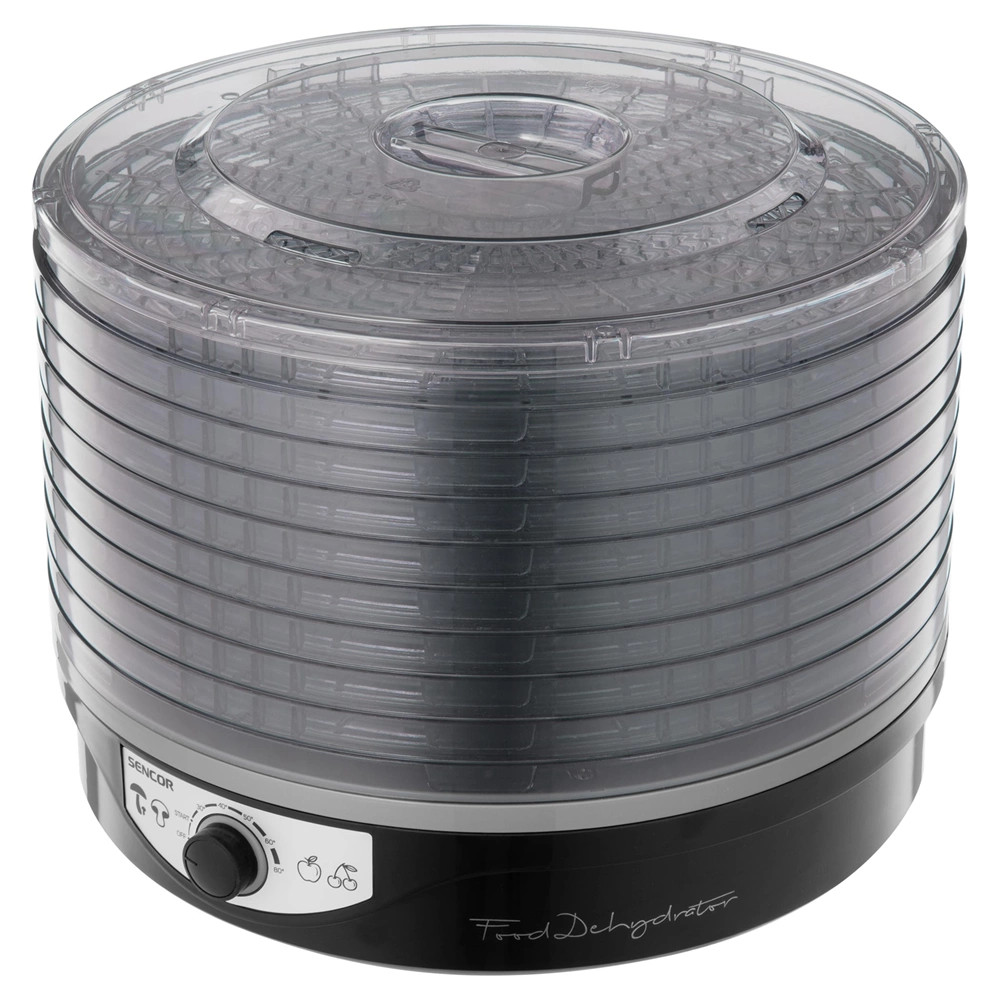 A Sencor SFD 3109BK aszaló 9 db szárító tálcával rendelkezik. A tálcák 33 cm átmérővel rendelkeznek és a szárítási szintek manuálisan állíthatók. Segítségével különböző aszalt gyümölcsöket, gyógynövényeket, gombákat, húsokat vagy akár halakat száríthatunk. A beépített ventilátor gondoskodik az egyenletes szárításról mindegyik szinten, a szárító sziták rácsának kialakítása pedig megakadályozza a penész keletkezését és optimalizálja a légáramlást. Az átlátszó borítás lehetővé teszi a szárítási folyamat teljeskörű ellenőrzését.